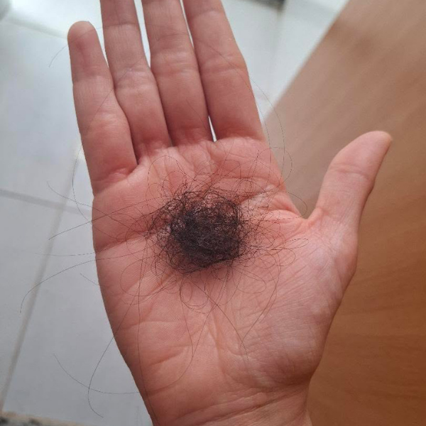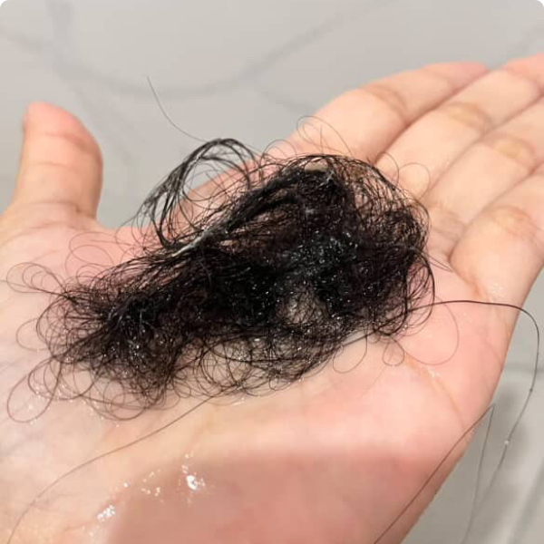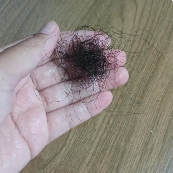 5 dias de tratamento“Eu quase chorei comparando as fotos 😭🫶 Meu cabelo caía demais, principalmente no banho e ao pentear. Depois que comecei a Fios de Rapunzel, foi outra história. Em pouco tempo já vi resultado real, não é promessa vazia não. A queda melhorou MUITO e o cabelo tá visivelmente mais saudável! Vale cada centavo!!!!”