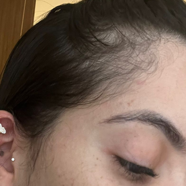 5 dias de tratamento“amei esse tonico 😍 alem da queda ter melhorado, minhas entradas começaram a encher tinha umas falhas bem visiveis e agora ja ta nascendo cabelinho to muito feliz ✨”