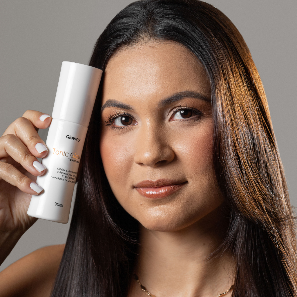 O Tonic Glow é um tônico capilar de uso diário, desenvolvido pra cuidar do couro cabeludo, fortalecer os fios e auxiliar na redução da queda, além de ajudar a melhorar falhas e entradas com o uso contínuo.